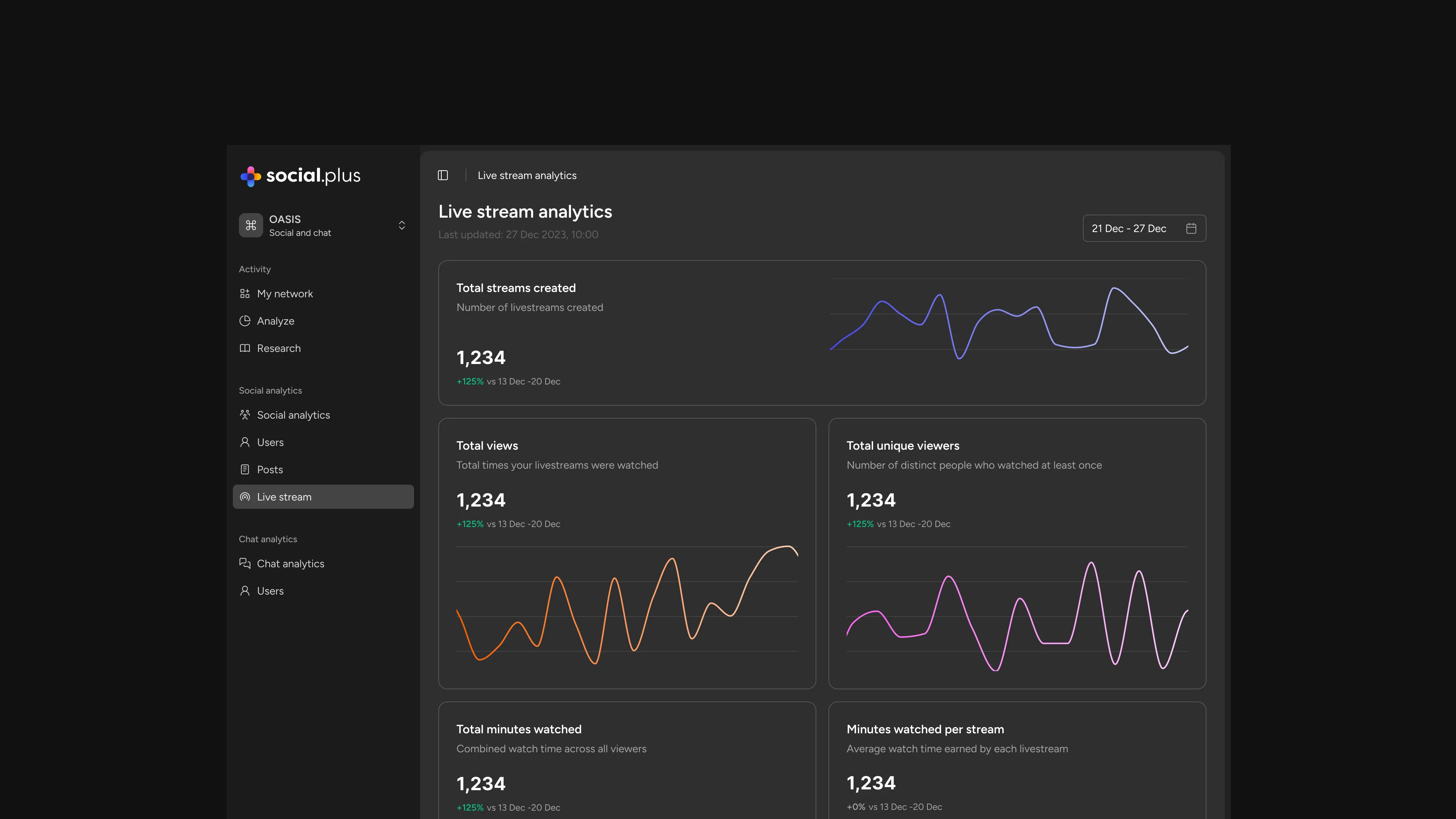 The bigger your community, the more you need control behind the scenes. Community managers can moderate livestream chats in real time from the social.plus console and UIKit without disrupting the experience for attendees. And with Livestream Analytics, every event becomes a data point: what drove people to show up, what resonates with your community, and where engagement peaked.