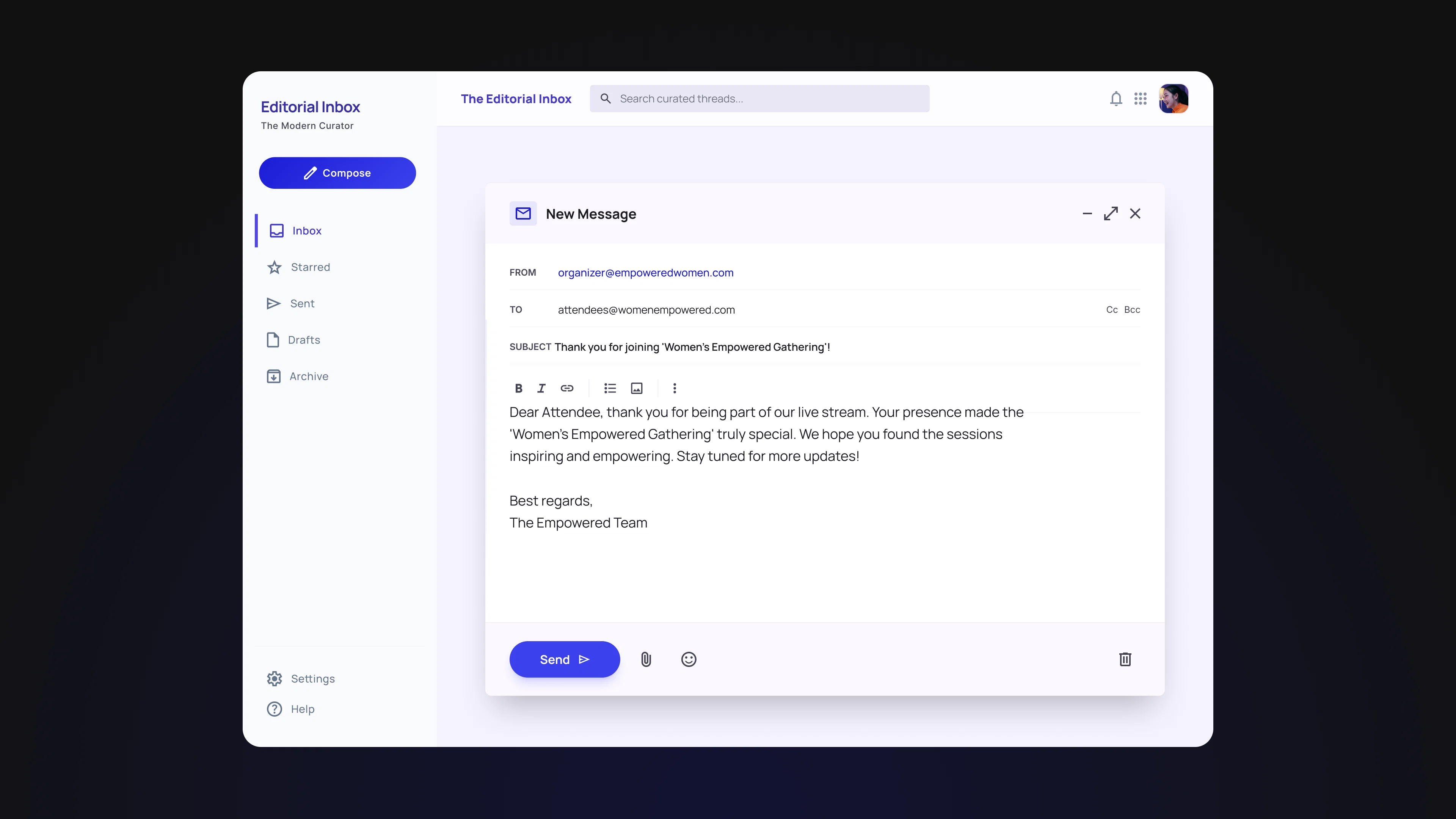 Not a generic thank-you. Something specific to what happened in that event. A reference to a moment that landed well, a question that came up in the chat that deserves a fuller answer, or a resource that connects to the topic covered. This signals that the event was not just produced and forgotten, and it gives attendees something to share with members who did not attend.