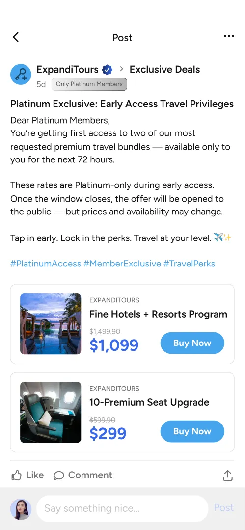 Custom Posts let you create specialized content types beyond standard text, image, or video posts. Each custom post is powered by structured data, giving you full control over what data is stored and how it is rendered. This makes Custom Posts ideal for use cases like product reviews, fitness activities, travel logs, or any experience that requires consistent structure and custom UI.